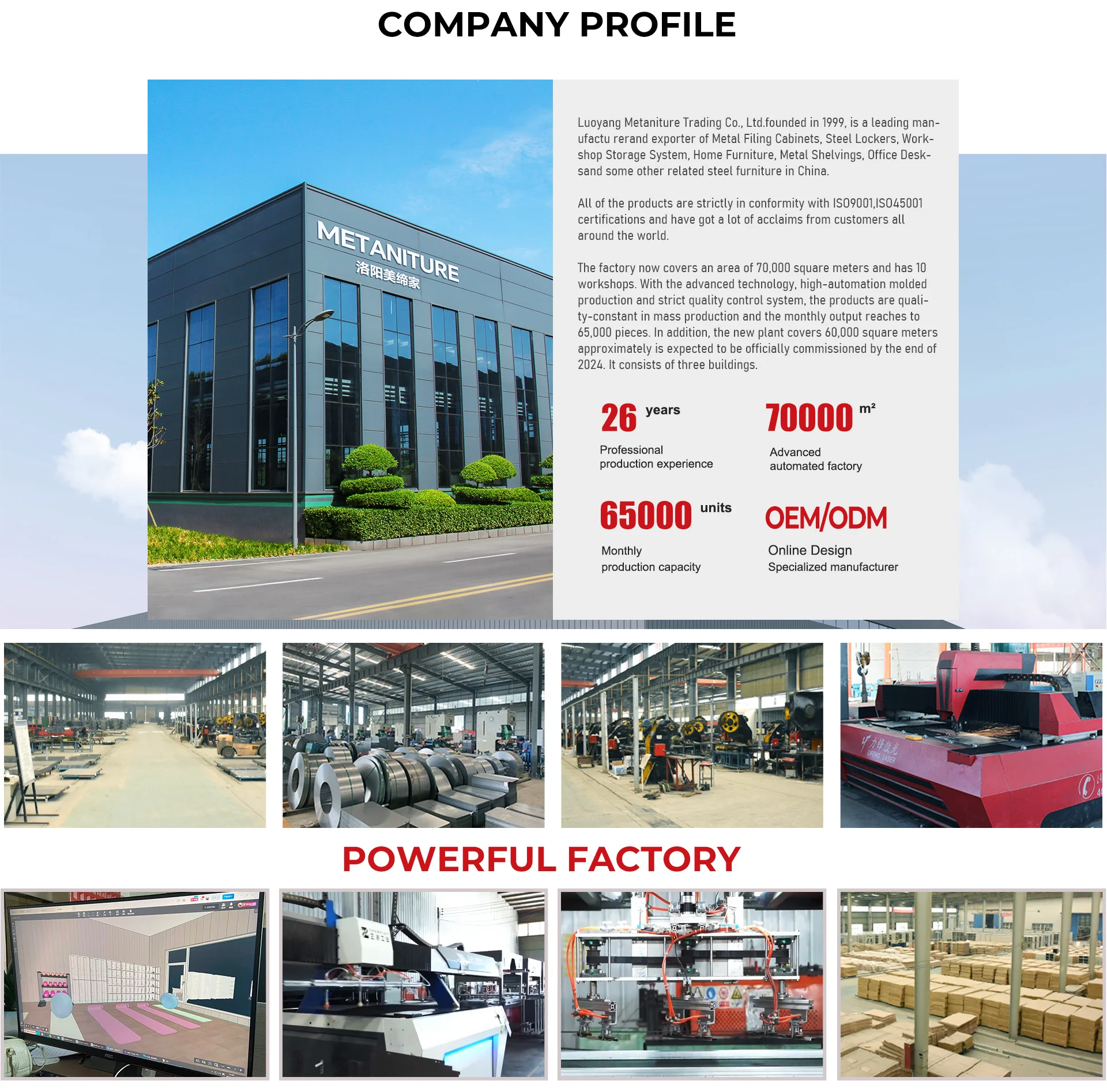 Luoyang Metaniture Trading Co., Ltd.founded in 1999, is aleading manufactu rerand exporter of Metal Filing Cabinets, SteelLockers,Workshop Storage System, Home Furniture, Metal Shelvings.Office Desksand some other related steel furniture in China.